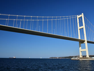 - 地球岬沖では時折、イルカの姿が見られます。また、白鳥大橋の下を通りますので、普段は見ることのできない景色をお楽しみいただけます。